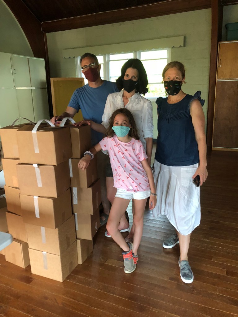 We continue to see new faces on Tuesday evenings when we pack boxes of shelf-stable goods and bags of produce for distribution the next day. Last night Michelle Peluso brought four Irvington neighbors to join the festivities. Their elbow grease was especially welcome as we prepared for the expected high attendance at the last pantry of the month, which is when we give out Stop & Shop gift cards.