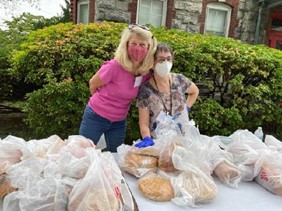 - Judy Connolly of Cabrini of Westchester stopped by with several boxes filled with shelf-stable food, diapers, various hygiene products.