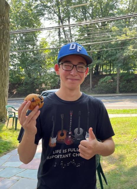Written By: Adam Galland, a High School Volunteer in Dobbs Ferry, seen below doing quality control on the Panera pastries.