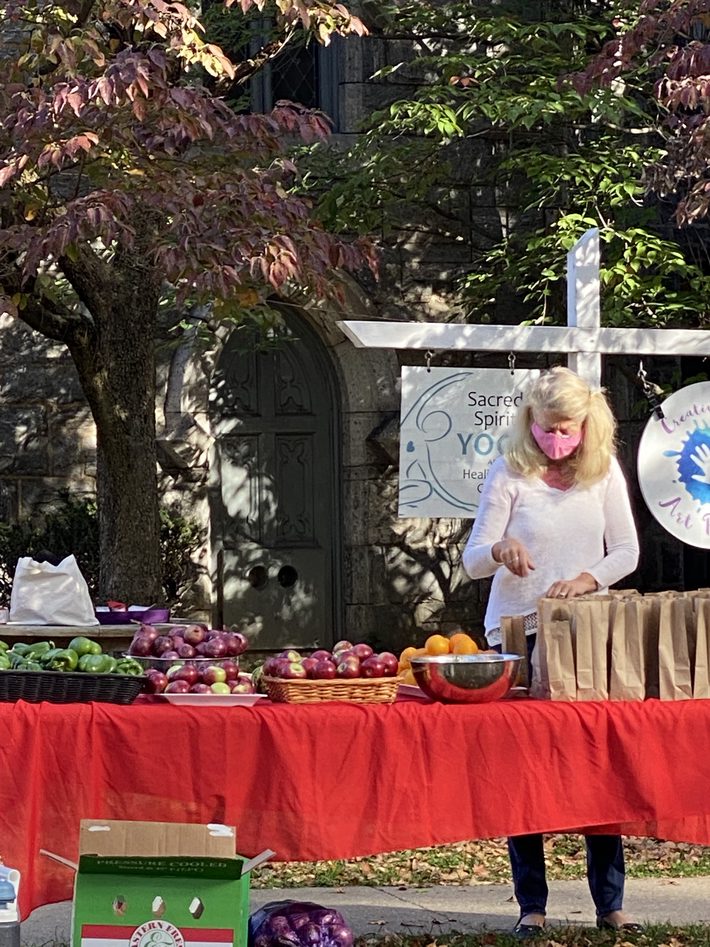 Today, those volunteers served 131 families, including 40 deliveries, for a total of 478 people. We distributed boxes of shelf stable food, bags of fresh vegetables, fruit, milk, cereals, dairy products from Mom’s Organics, and baked goods from Panera, NY Bagel Authority and The Shop. This is all made possible by the generous donations from our community churches, organizations and businesses as well as from individuals.