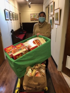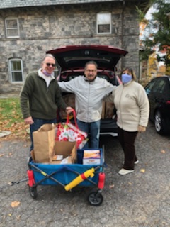 Thankfully, our wagons have runneth over with the outpouring of holiday-themed donations from the community. The Masters School did a food drive, as did the Alcott Montessori School and Scarsdale Woman’s Club. Today we set up a special holiday table with an assortment of essential fixings like stuffing, sweet potatoes and candied yams, gravy, and cranberry sauce. We also gave out Stop & Shop gift cards to enable our neighbors to buy the meat or poultry of their choice. This timely bounty was a festive addition to our regular offerings from The Shop, Panera Bread, Mom’s Organic Market, and New York Bagel Authority. Also, Stop & Shop partnered with Feeding Westchester for the annual Thanksgiving Fill-a-Bus food drive.
