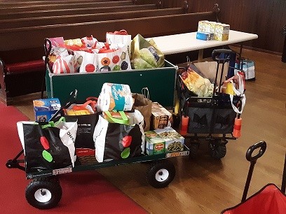 Pictured below is a sample of what Ardsley United Methodist Church volunteer Judy described as “a light” delivery of shelf stable goods.