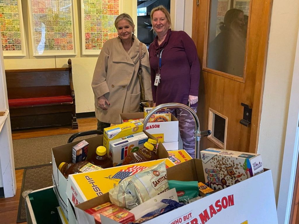Teachers Patti Giuliano and Karen LaPorte dropped off donations from the generous fourth graders at Springhurst Elementary School.
