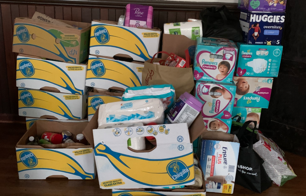 We prefer healthy foods that don’t require refrigeration. When you pick something up for yourself, pick up a second one for your neighbor. Every week we give out pantry basics like rice, beans, pasta, cereal, tuna, soups, canned tomatoes, veggies and fruits. Our clients love to get cleaning supplies, coffee, oil, vinegar and snacks. We also distribute diapers for babies and adults.