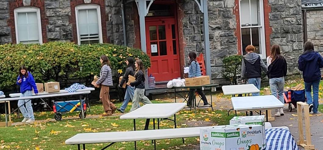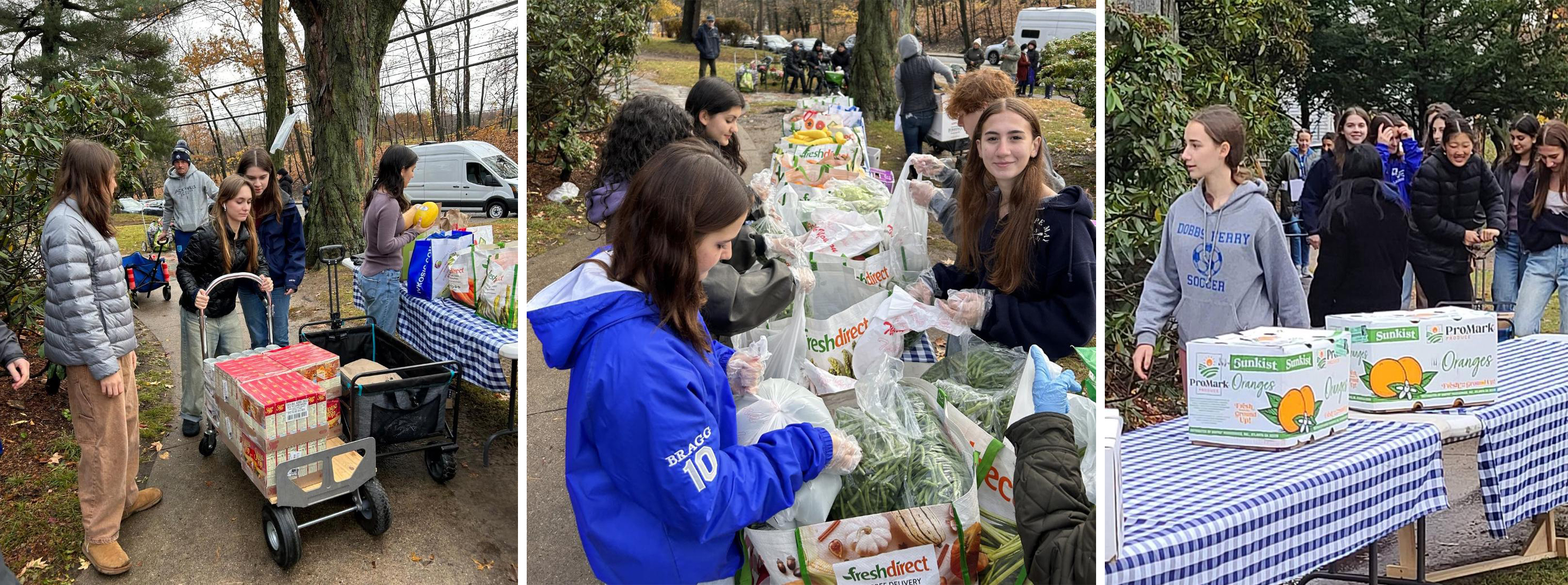 Twelve members of Dobbs Ferry High School Hands-In community service club carted and carried pies to the pantry.