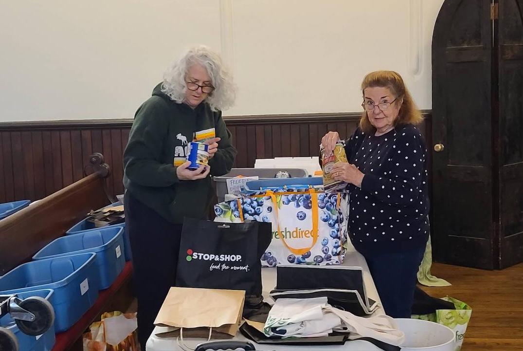 Bilman, (left), and Platt, director of Community Nursery School, managed to sort through, date-check and store most of the wagonloads of donations we received, as time was running out.