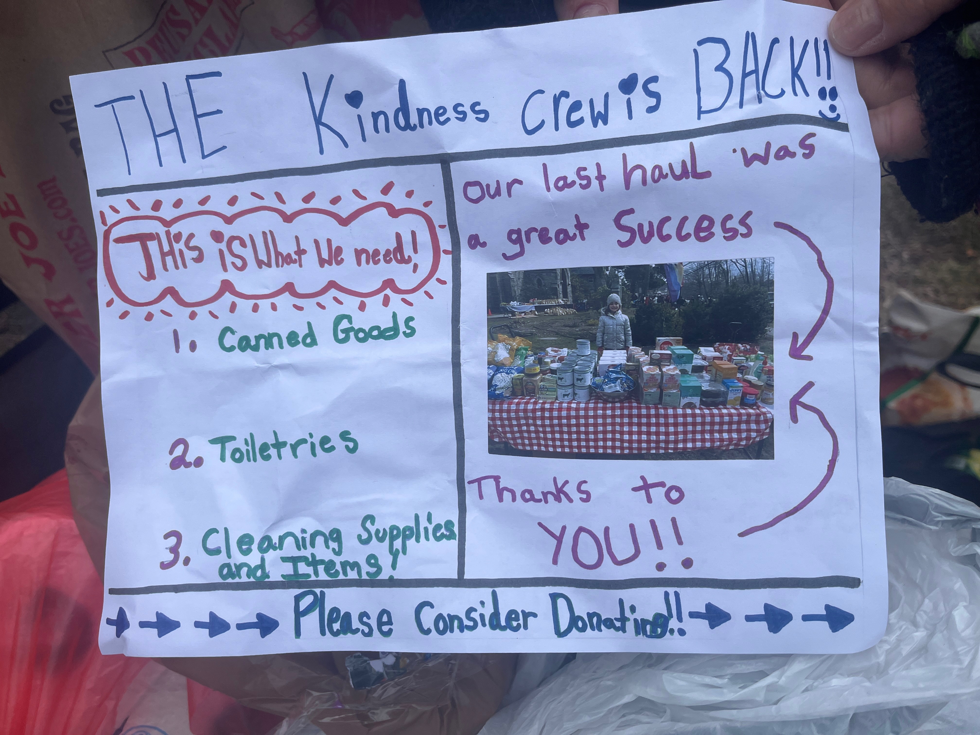 Kids really helped out in big ways in February. The Kindness Crew was back with a hugely successful drive. Way to spread the word, Crew! Here’s Joanna Golden, above right, bringing their donations.