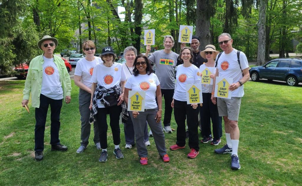 Teams and individuals from the Rivertowns gathered on April 28 at the Irvington Presbyterian Church, where Rev. Dr. Blaine Crawford thanked them for participating in the CROP Hunger Walk to raise money for fighting hunger locally through Feeding Westchester, a food bank.