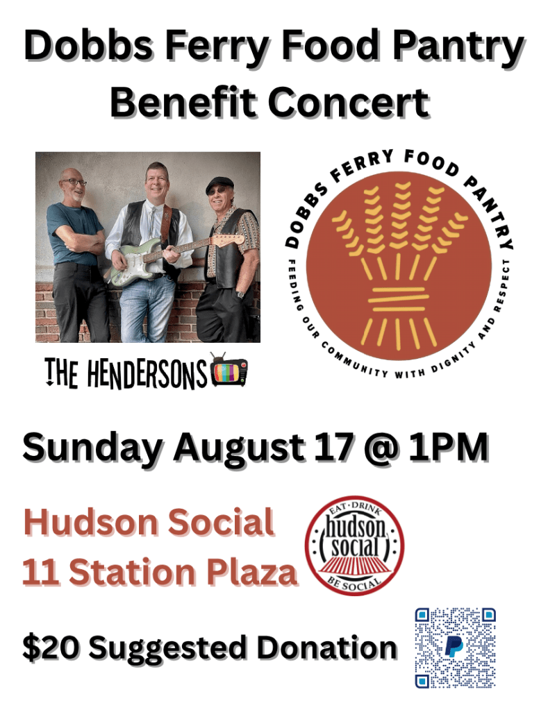 Greetings from Anywhere musicians have long performed in the city and around the Hudson Valley, blending folk, blues, bluegrass and country into a roots-rock hybrid. We’re thrilled that they’re hosting a fundraiser for the pantry at South Presbyterian Church in Dobbs Ferry. This is a fantastic way to celebrate the end of summer. More details to follow.