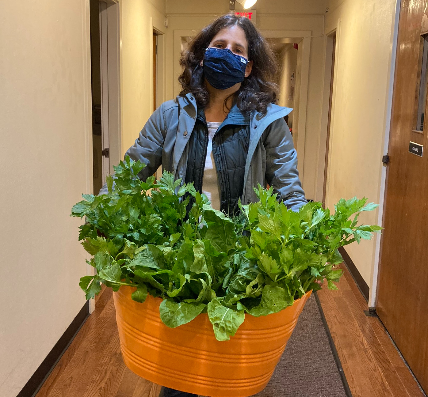 Previous Image Next Image IMG_2444 Sara Sellitti with a beautiful basket of produce from the Springhurst garden